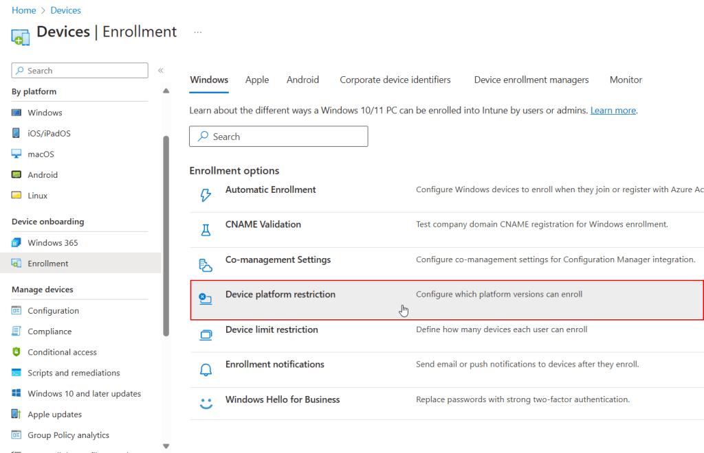 Scenario: You’re tasked with restricting users from enrolling their personal devices with Microsoft Intune.