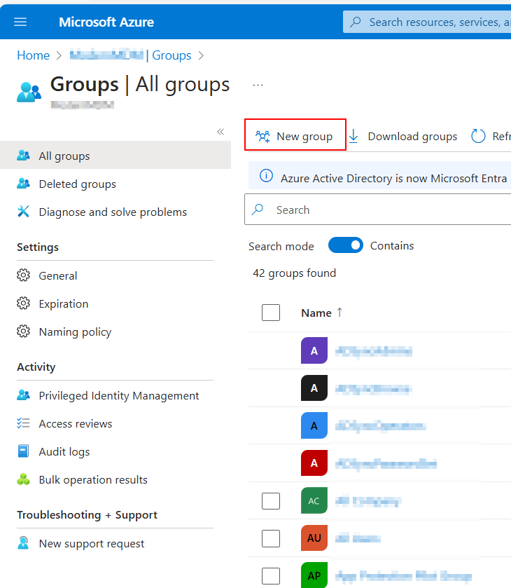Go to Microsoft Entra ID > Select Groups under Manage section